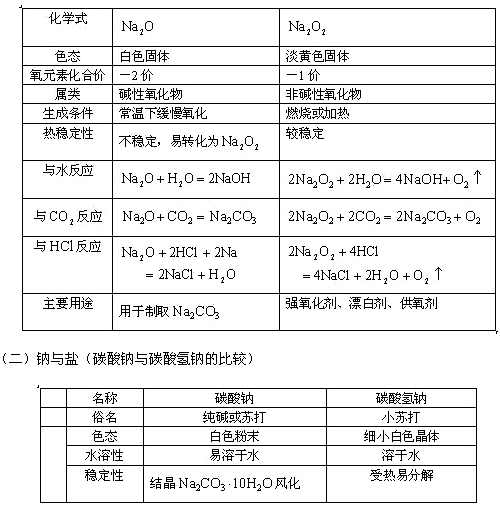 通過列表對比學(xué)習(xí):鈉的氧化物;碳酸鈉和碳酸氫鈉;以及連線法表示鈉及其重要化合物的相互轉(zhuǎn)化,可使學(xué)生更直觀地掌握元素、化合物知識,及用對立統(tǒng)一的辯證唯物主義觀點掌握物質(zhì)之間的相互轉(zhuǎn)化關(guān)系。