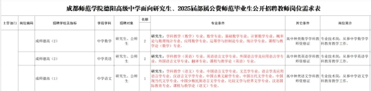 為貫徹落實德陽市委、德陽市人民政府關于德陽市基礎教育高質量發(fā)展的決策部署,進一步落實立德樹人根本任務,全面深化“辦人民滿意的教育”工程,助力成都師范學院德陽高級中學高質量發(fā)展,成都師范學院德陽高級中學決定面向研究生、2025屆部屬公費師范畢業(yè)生公開招聘教師,現(xiàn)將有關事項公告如下: