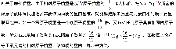 關(guān)于摩爾質(zhì)量,教材是從一些數(shù)據(jù)的分析,總結(jié)出摩爾質(zhì)量和粒子的相對(duì)原子質(zhì)量或相對(duì)分子質(zhì)量的區(qū)別和聯(lián)系,自然引出摩爾質(zhì)量的定義。有利于學(xué)生的理解。