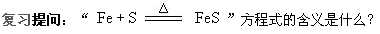 學(xué)生思考:方程式的含義有:宏觀上表示56份質(zhì)量的鐵和32份質(zhì)量的硫在加熱的條件下反應(yīng)生成88份質(zhì)量的硫化亞鐵。微觀上表示每一個(gè)鐵原子與一個(gè)硫原子反應(yīng)生成一個(gè)硫化亞鐵分子。