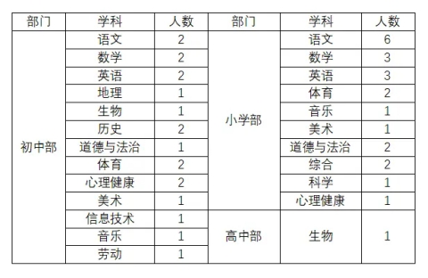 根據(jù)學(xué)校崗位需求,下半年學(xué)校招聘計劃如下: