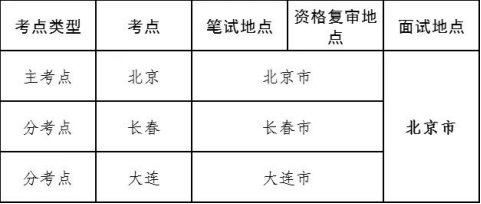 本次招聘設(shè)置一個主考點和兩個分考點,其中北京市為主考點,長春市、大連市為分考點。各考點各環(huán)節(jié)地點安排如下: