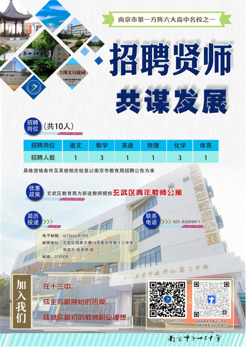 郵寄地址:南京市玄武區(qū)西家大塘14號南京市第十三中學(xué)黨政辦張老師收郵編:210008