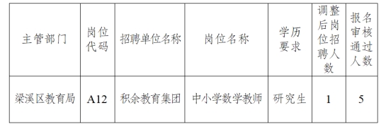2025年無錫市梁溪區(qū)教育系統(tǒng)引進(jìn)優(yōu)秀青年人才網(wǎng)上報名工作已于2024年11月5日16:00結(jié)束。根據(jù)《2025年無錫市梁溪區(qū)教育系統(tǒng)引進(jìn)優(yōu)秀青年人才公告》規(guī)定,“A12中小學(xué)數(shù)學(xué)教師”崗位因報名人數(shù)未達(dá)開考比例,調(diào)整招聘人數(shù):