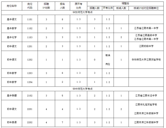 2025關于調(diào)整無錫江陰市教育系統(tǒng)面向普通高校2025屆優(yōu)秀畢業(yè)生公開招聘教師開考比例及核減部分崗位