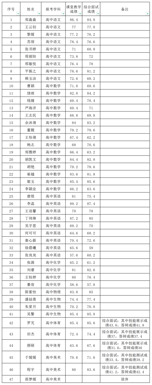 2024年南京市第二十九中學(xué)公開招聘面試成績(jī)公示
