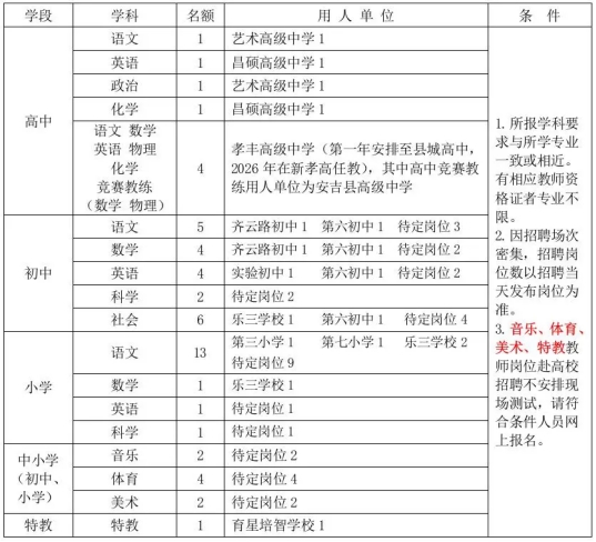 根據(jù)《浙江省安吉縣招聘2025年教師公告》,我縣組團(tuán)赴安徽師范大學(xué)現(xiàn)場(chǎng)擇優(yōu)招聘事業(yè)編制教師,具體招聘事項(xiàng)公告如下: