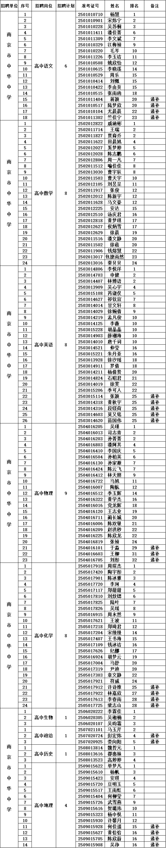 南京市中華中學(xué)2024年10月公開(kāi)招聘教師面試考生名單公示