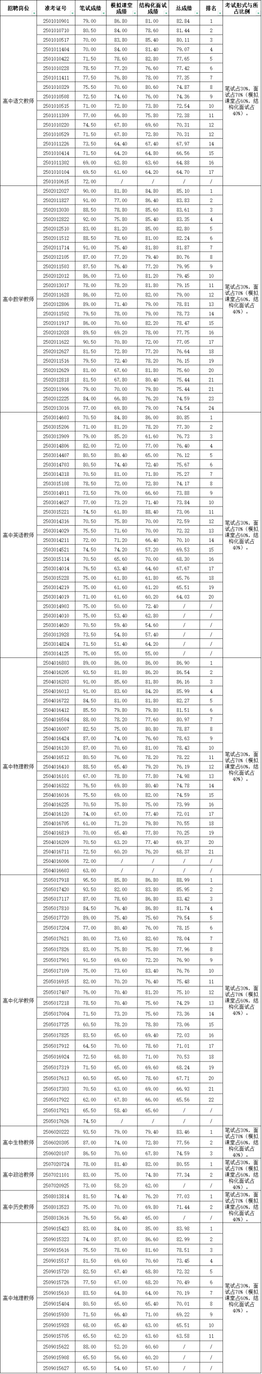 根據(jù)《南京市教育系統(tǒng)部分事業(yè)單位2024年10月公開招聘教師公告》(寧事招公告(R)〔2024〕36號)的要求,現(xiàn)將參加面試的考生成績予以公布。