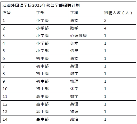 因?qū)W校發(fā)展需要,現(xiàn)面向省內(nèi)外公開招聘2025年秋季小學(xué)、初中和高中教師18名。