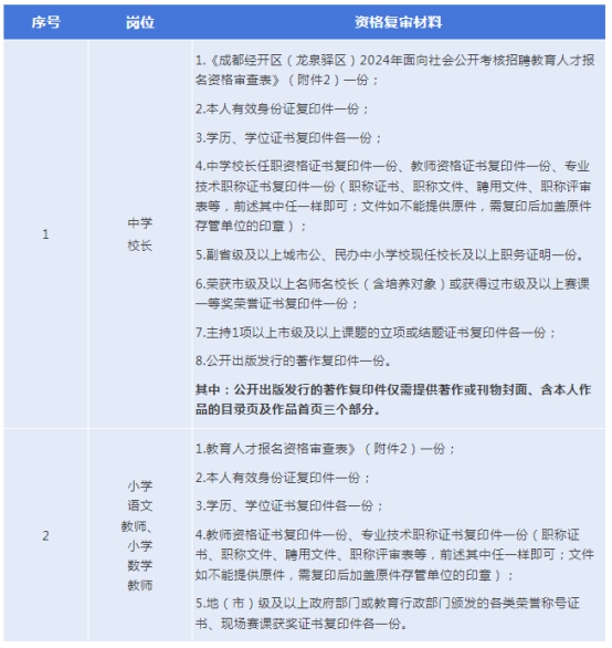 崗位具體條件見《成都經(jīng)開區(qū)(龍泉驛區(qū))2024年面向社會公開考核招聘教育人才崗位表》(附件1)。
