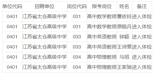 附:蘇州市教育系統(tǒng)(太倉市)公開招聘2025年應(yīng)屆高層次優(yōu)秀畢業(yè)生進(jìn)入體檢人員名單