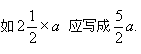 如3×a ,應(yīng)寫作3.a 或?qū)懽?a ,a×b 應(yīng)寫作3.a 或?qū)懽鱝b .帶分?jǐn)?shù)與字母相乘,應(yīng)把帶分?jǐn)?shù)化成假分?jǐn)?shù),