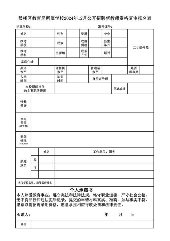 附件2:鼓樓區(qū)教育局所屬學(xué)校2024年12月公開招聘新教師資格復(fù)審報名表.pdf