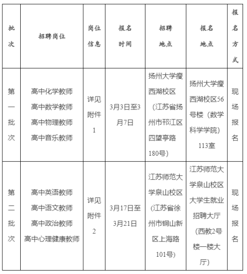 射陽縣教育局相關下屬事業(yè)單位、縣教育局和縣人社局在揚州大學和江蘇師范大學設點實施校園招聘,具體招聘信息在射陽縣人民政府網(http://www.sheyang.gov.cn)和相關高校發(fā)布。