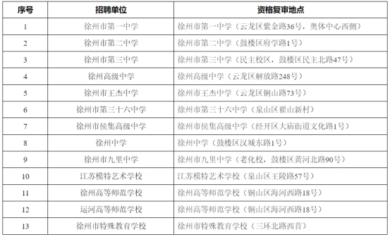地點(diǎn):各招聘學(xué)校資格復(fù)審地點(diǎn)見下表。