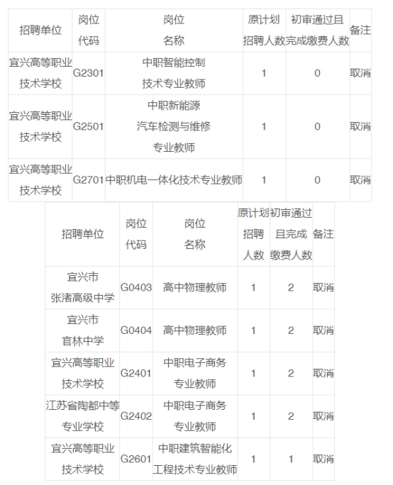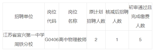 2025年江蘇省宜興市教育系統(tǒng)公開招聘事業(yè)編制教師報名工作已結(jié)束,經(jīng)審核,部分崗位最終報考人數(shù)少于該崗位招聘人數(shù)的3倍,未能達到開考比例。按照《2025年江蘇省宜興市教育系統(tǒng)公開招聘事業(yè)編制教師公告》(錫人社事招公告?zhèn)洹?025〕26號)精神,需相應(yīng)取消、核減部分招聘崗位計劃,現(xiàn)將取消(核減)崗位公告如下: