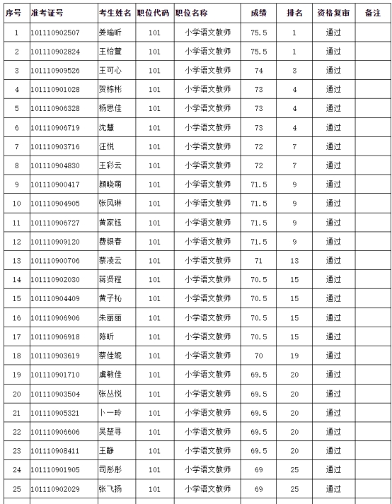 根據(jù)《2025年鎮(zhèn)江市潤(rùn)州區(qū)教育系統(tǒng)公開(kāi)招聘教師公告》(鎮(zhèn)潤(rùn)人社事招公告〔2025〕01號(hào))要求,以下考生通過(guò)了資格復(fù)審,現(xiàn)予以公示。請(qǐng)考生在鎮(zhèn)江市人事考試考工服務(wù)平臺(tái)查詢閱讀《鎮(zhèn)江市暨部分轄市區(qū)教育系統(tǒng)2025年公開(kāi)招聘事業(yè)編制工作人員集中面試通告》,查看本人報(bào)考職位面試日期安排和面試通知單打印開(kāi)始時(shí)間。咨詢電話:0511-85589160。