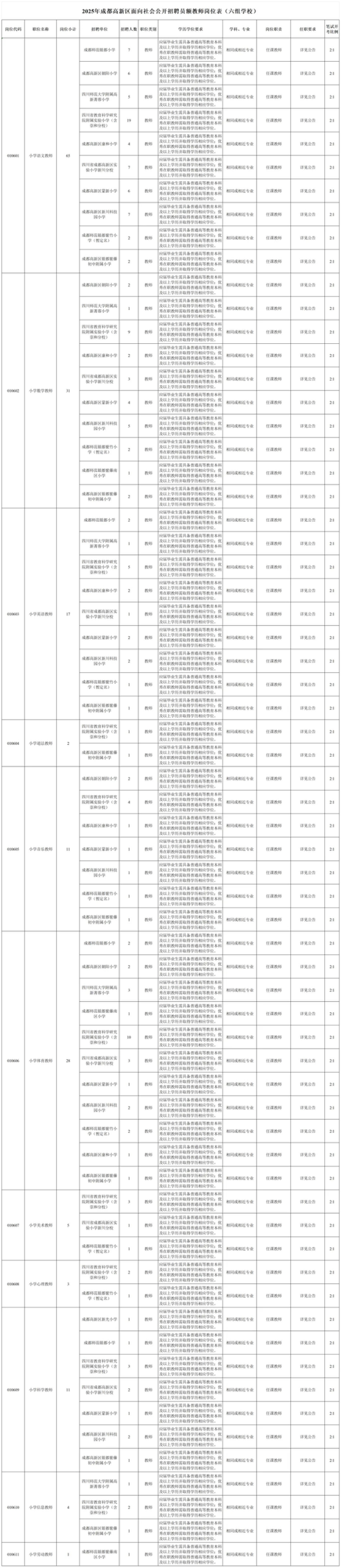 本次公開招聘為成都高新區(qū)教育系統(tǒng)編制外招聘,招聘人員實行合同制管理,納入員額教師管理序列。具體招聘單位、名額、崗位見《2025年成都高新區(qū)面向社會公開招聘員額教師崗位表(六組學(xué)校)》(以下簡稱《崗位表》)。