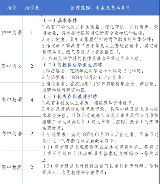 此次招聘工作在成都市雙流區(qū)教育局領(lǐng)導(dǎo)下進(jìn)行,由駐區(qū)教育局紀(jì)檢監(jiān)察組進(jìn)行全程監(jiān)督。