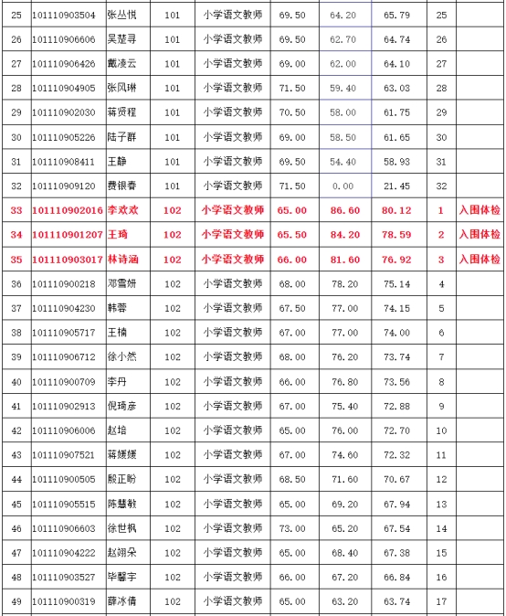根據(jù)《2025年鎮(zhèn)江市潤州區(qū)教育系統(tǒng)公開招聘教師公告》規(guī)定,現(xiàn)將2025年潤州區(qū)教師招聘總成績(第二批)公告如下,表中紅色字體標注人員為入圍體檢、考察人選。公告時間為6月17日至6月19日,公告結(jié)束后將組織入圍考生進行體檢、考察,具體時間和地點另行通知。咨詢電話:潤州區(qū)教育局 0511-85589160;監(jiān)督電話:潤州區(qū)教育局0511-85589112區(qū)人社局0511-80820590區(qū)紀委監(jiān)委0511-85622633。