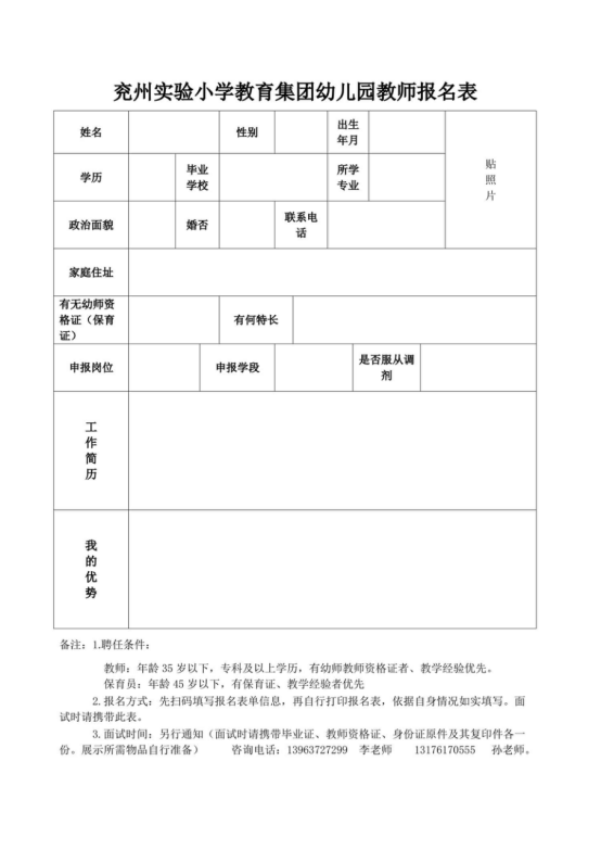1.應(yīng)聘人員在規(guī)定時間內(nèi),掃描“幼兒園教師招聘報名表”二維碼進入報名頁面,如實填寫、提交個人信息資料。