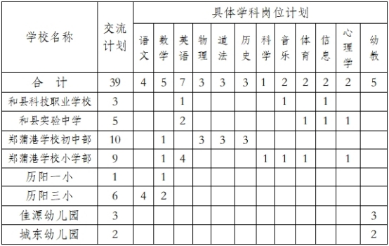 根據(jù)和縣人民政府辦公室關(guān)于印發(fā)《和縣中小學(xué)教師“縣管校聘”管理改革實(shí)施辦法(試行)》的通知精神,結(jié)合城區(qū)學(xué)校(含城區(qū)幼兒園和鄭蒲港學(xué)校,下同)師資現(xiàn)狀,經(jīng)研究決定,采取競(jìng)聘上崗的方式交流部分教師至城區(qū)部分學(xué)校任教,現(xiàn)公告如下: