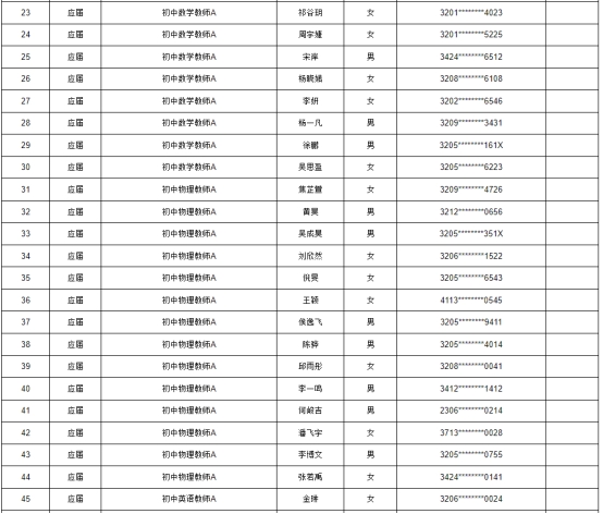 根據(jù)《2025年蘇州高新區(qū)教育系統(tǒng)公開招聘事業(yè)編制教師公告》要求,經(jīng)過報名、資格初審、考試、資格復(fù)審,體檢和考察合格,擬錄用陶燦等199名同志,現(xiàn)予以公示: