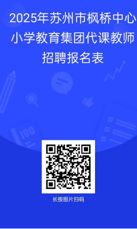(1)本次公開招聘采用網(wǎng)絡(luò)報(bào)名方式,應(yīng)聘者請(qǐng)關(guān)注“蘇州市楓橋中心小學(xué)教育集團(tuán)”微信公眾號(hào)并掃描下方二維碼填寫相關(guān)信息,信息務(wù)必真實(shí)準(zhǔn)確。