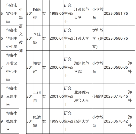 根據(jù)《句容市教育局所屬學校2025年校園公開招聘教師(江蘇師范大學考點)》(鎮(zhèn)句事招公告〔2024〕11號)經(jīng)資格審查、面試、體檢和考察,現(xiàn)將句容市教育局所屬學校2025年校園公開招聘(江蘇師范大學考點)擬聘用人員名單予以公示,公示時間2025年8月25日-9月2日。