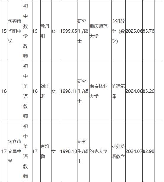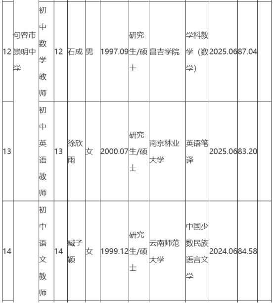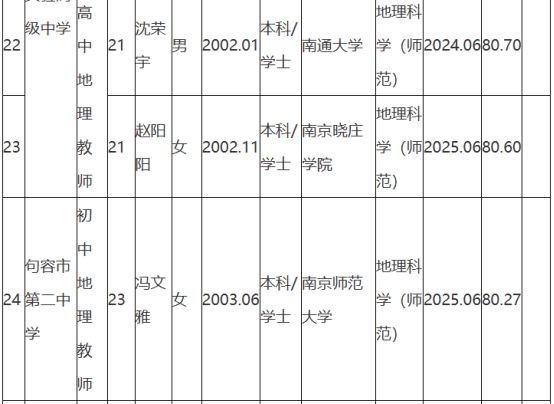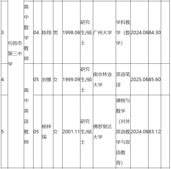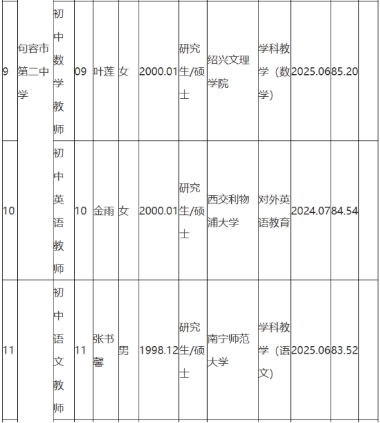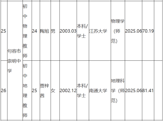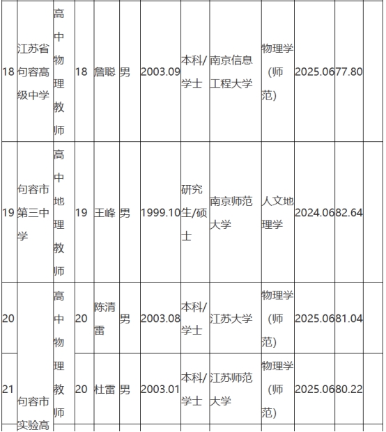 根據(jù)《句容市教育局所屬學(xué)校2025年第一批校園公開(kāi)招聘教師公告》(鎮(zhèn)句事招公告〔2024〕8號(hào))經(jīng)資格審查、面試、體檢和考察,現(xiàn)將句容市教育局所屬學(xué)校2025年第一批校園招聘擬聘用人員名單予以公示,公示時(shí)間2025年8月25日-9月2日。