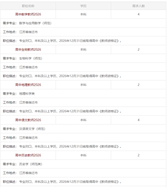 江蘇省泗陽桃州中學(xué)2025年秋季招聘簡章