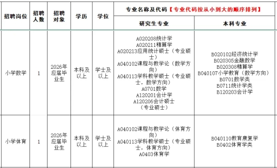 一、招聘崗位:小學體育與健康1名,小學數(shù)學1名。
