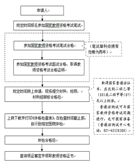 申請人應在上海市教師資格認定工作辦公室指定的醫(yī)院進行體檢。