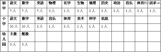 根據(jù)學(xué)校發(fā)展的需要,我校擬在今年暑假面向全國(guó)高薪誠(chéng)招教學(xué)精英,幼兒園、小學(xué)、初中各科專業(yè)教師招聘人數(shù)如下: