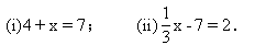 (1)3y-1=2y; (2)3+4x+5x2; (3)7×8=8×7 (4)6=0.