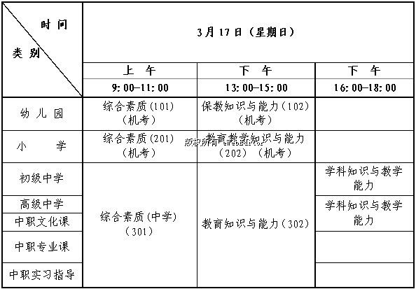 備注:考生必須憑有效身份證件、準(zhǔn)考證參加考試。準(zhǔn)考證打印時(shí)間與方式:考生在3月11日左右可登錄考試網(wǎng)站報(bào)名系統(tǒng),自行下載并打印準(zhǔn)考證。按照準(zhǔn)考證規(guī)定的時(shí)間、地點(diǎn)和其他要求參加考試。
