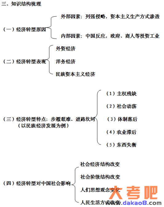 (4)多角度剖析近代經濟轉型對中國社會發(fā)展的影響。