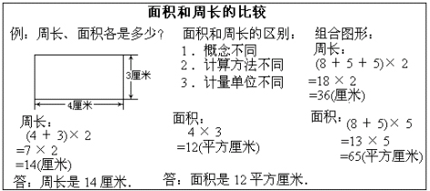 區(qū)別面積和周長的意義、計量單位和計算方法.