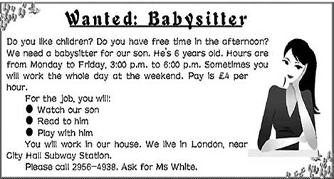 36. The babysitter will work _____ hours from Monday to Friday altogether (總共).