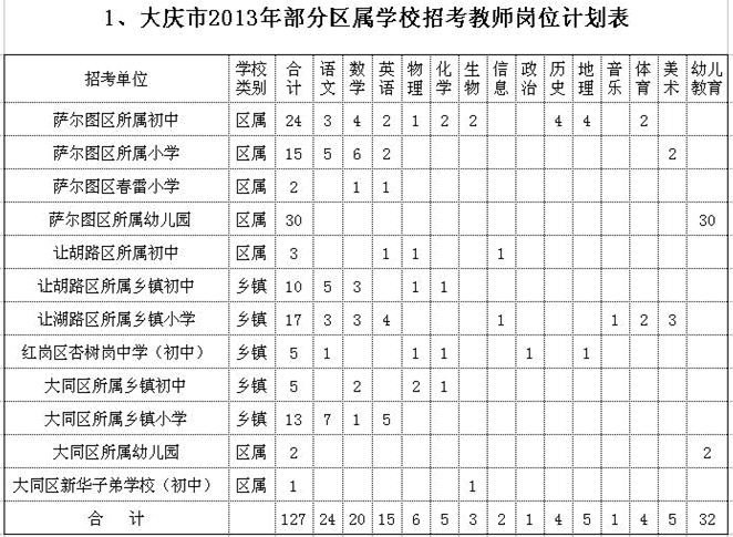 大慶市2013年部分區(qū)屬學校招考教師公告