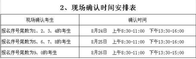 確認時間:2013年8月24日—8月26日(報名考生具體現(xiàn)場確認時間見現(xiàn)場確認時間安排表)