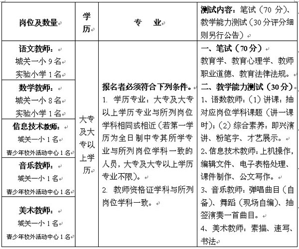 3、從事小學(xué)教學(xué)工作的方可報(bào)考城關(guān)一小、實(shí)驗(yàn)小學(xué);
