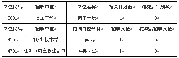 2014年江蘇省無錫市江陰市教師招聘計劃調(diào)整的公告