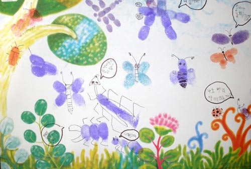活動準備昆蟲照片,放大鏡,彩色印泥(丙烯酰胺顏料,非織造布),簽字筆或彩色鉛筆,濕巾
