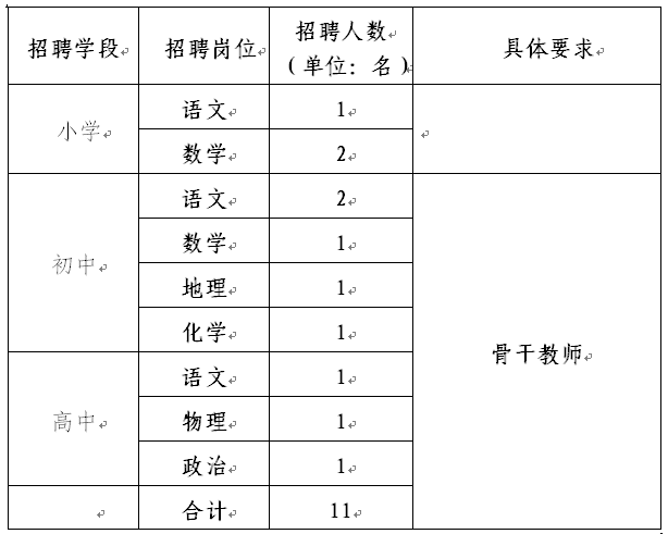 為滿足辦學(xué)實(shí)際需要,師大附,F(xiàn)面向社會(huì)選聘中小學(xué)優(yōu)秀教師11名(詳見(jiàn)崗位需求表)。有關(guān)事項(xiàng)公告如下: