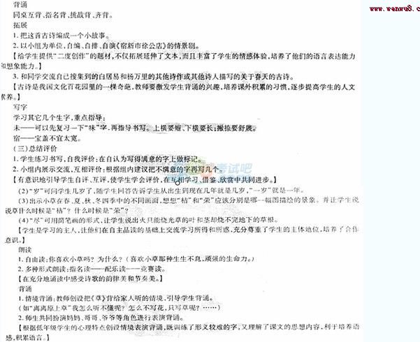 2、正確、流利、有感情地朗讀課文,背誦課文。感受小草頑強的生命力,想象兒童在花叢中捕蝶的快樂。體會詩人熱愛春天、熱愛生活的情感。