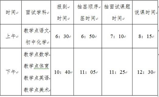 面試實行百分制,采用說課的方式進(jìn)行。具體辦法是先抽順序簽,再抽說課課題簽,備課一小時,說課12分鐘。