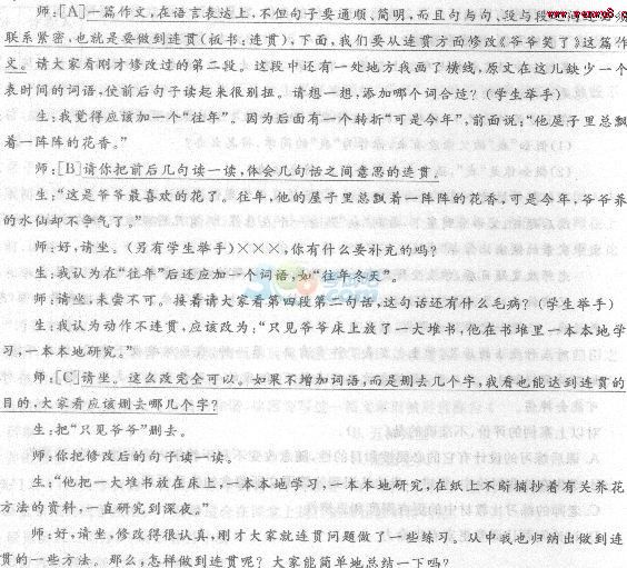 D.通過學(xué)生的回答,我們可以看出經(jīng)過教師的精心設(shè)計(jì),學(xué)生在訓(xùn)練中已經(jīng)初步掌握了“連貫”的技巧