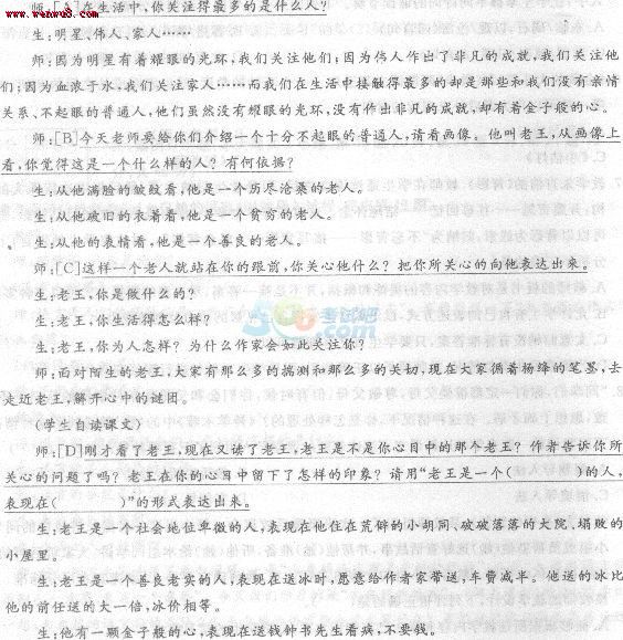 D.讓學生說出老王在自己心中的印象,可以培養(yǎng)學生自主學習的精神,完成對文章內(nèi)容的個性化理解